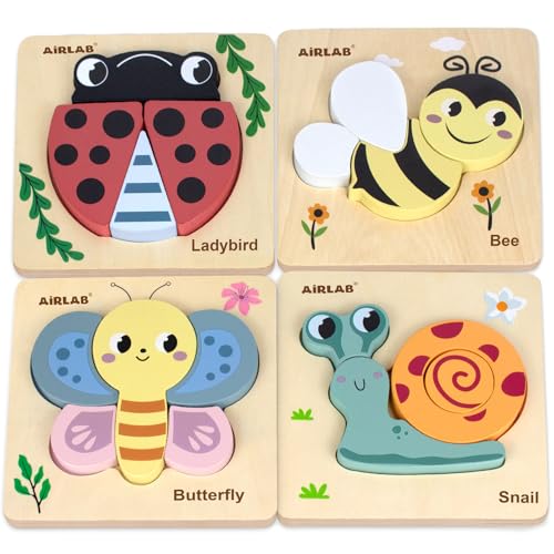 Airlab träpussel för barn, trädgårdsdjur klumpiga formpussel för småbarn över 1 2 3 år, baby Montessori förskola pedagogiska inlärningsleksaker för flickor pojkar, barn handgjorda leksaker