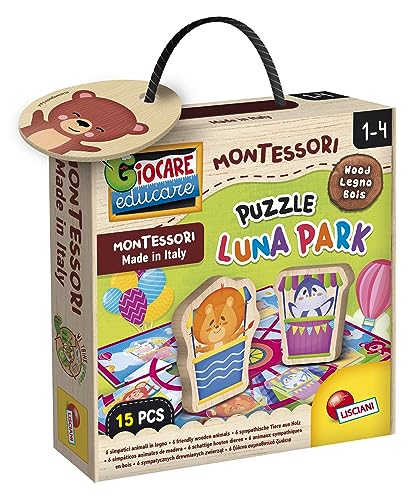 Lisciani - MONTESSORI TRÄPUSSEL Luna Park - Träpussel - För barn från 1 till 4 år - Sensorisk utveckling - Stimulerar logik och koordination - Tillverkad i Italien