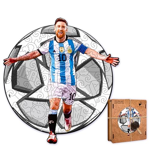 Träpussel barn ungdomar vuxna fotboll pussel motiv koncentration motorik hållbar miljövänlig björkträ laserskuren gåva avkoppling konst sportpussel (fotboll stjärna L M)