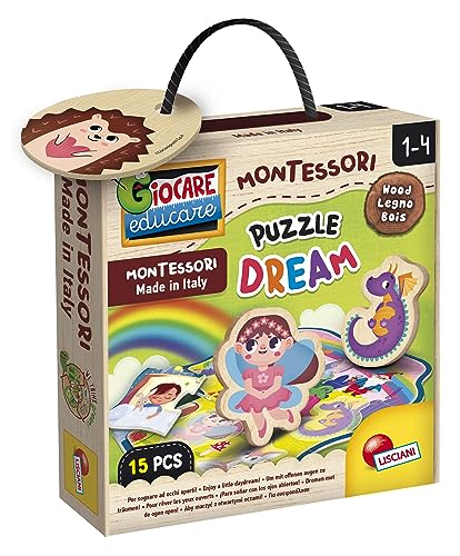 LISCIANI - MONTESSORI PUZZLE DREAM - Träpussel - För barn i åldern 1 till 4 år - Sensorisk utveckling - Stimulerar fantasi och självständighet - Tillverkad i Italien