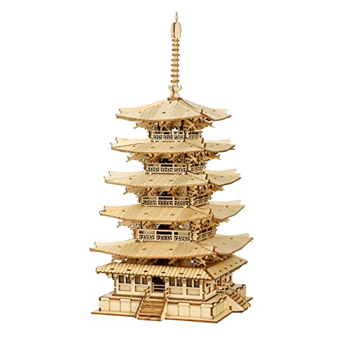 Rolife 3D-pussel fem våningar Pagod – träpussel för vuxna gör-det-själv-modellsatser, byggsatser träbyggsatser, estetisk heminredning gåvor