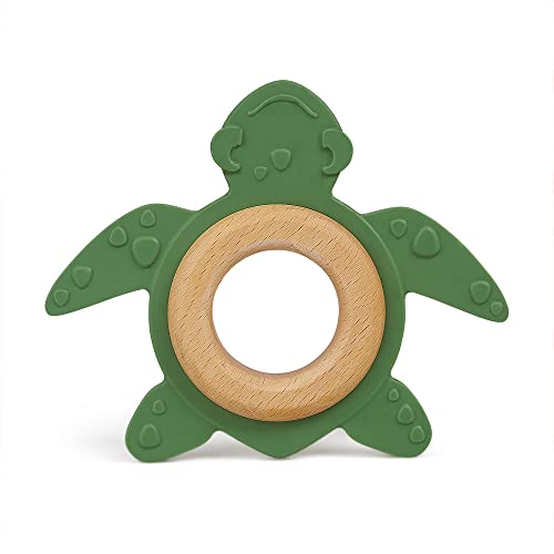 Grönt bite djur av naturgummi med träring, tandhjälpmedel och leksaker, masserar tandkött, BPA-fritt, främjar finmotorik, sköldpadda, grön (689-00), 1 styck (1-pack)