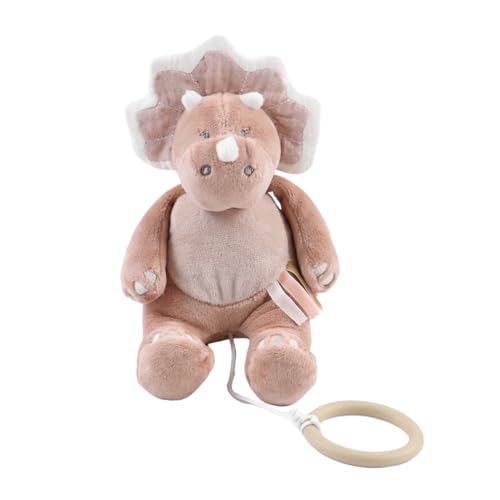 NOUKIE'S - Mini Musical Ops - ekologisk bomull dinosaurie plysch + träring - musikalisk uppvaknande - babygåva