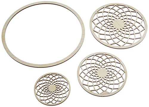 Rayher 62826000 uppsättning av fyra drömfångare med tre mandala-mönstrad skiva med en diameter på 7,10,13 cm och en stor träring, naturligt trä, blandat