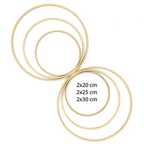 EkoDeko bamburingar 6-pack: 2 x 20 cm, 2 x 25 cm, 2 x 30 cm träringar för pyssel, drömfångare, träring