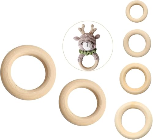 Tyqour 10 stycken babyträringar för pyssel, 70 mm träring, träringar i naturligt trä bitring, makraméringar trä teether tandring för spädbarn barnvård, gör-det-själv hantverk, träarmband