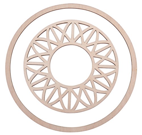 Rayher 62821000 set med två drömfångare mandala-mönstrad skiva och en stor träring, naturligt trä, 13 cm