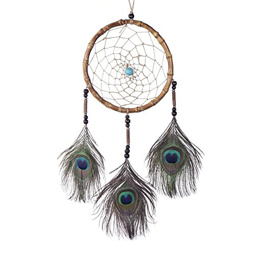 Stor drömfångare för vackra drömmar med pärlor och äkta fjädrar, trä-ring nötbrun Ø 17 cm