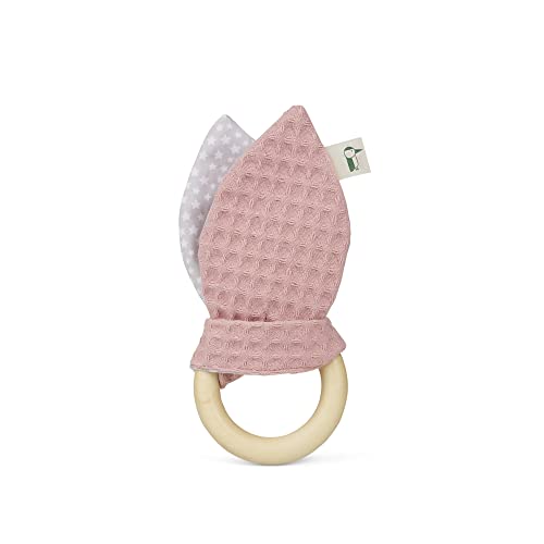 GRÜNSPECHT Greppring med tygöron, träring med tvättbara tygrör i 100% bomull, för känsla och taktil känsla, presentleksak för baby, rosa (571-V2)