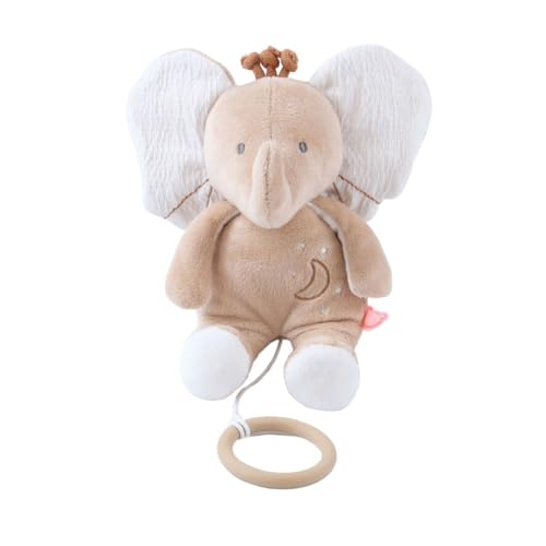 Noukie's - Mini Musical Moka plysch - Godis i ekologisk bomull + träring - musikalisk uppvaknande - babygåva