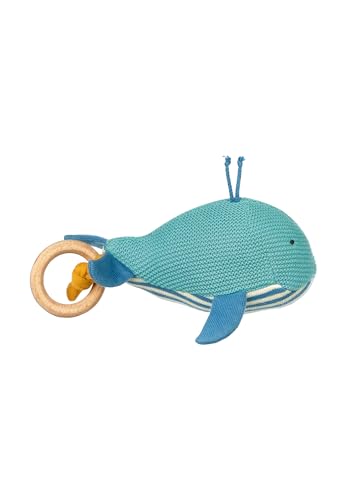 SIGIKID 39672 Stickad greppleksak val stickad kärlek, babyleksak i bomullsstickning med träring och skallra, för att greppa, lyssna och leka för spädbarn från 3–12 månader, blå, 15 x 9 x 9 cm
