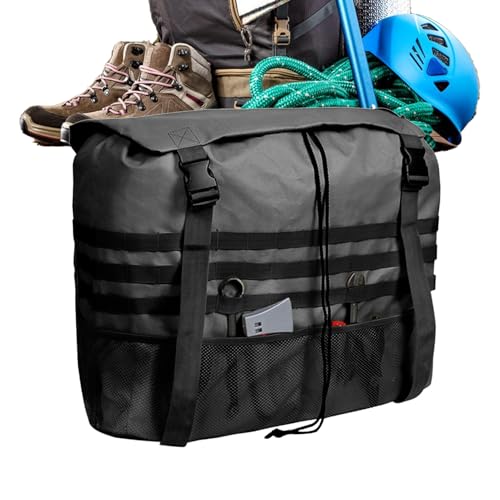 Spare Tire Trash Bag, Large Capacity Cargo Storage Pouch, Heavy-Duty Rear Tire Organizer, Perfect for Vehicle Trip, Car, Offroad Truck, Rv, Road Travel, Camping, Hiking, 58x18x60cm Black Khaki