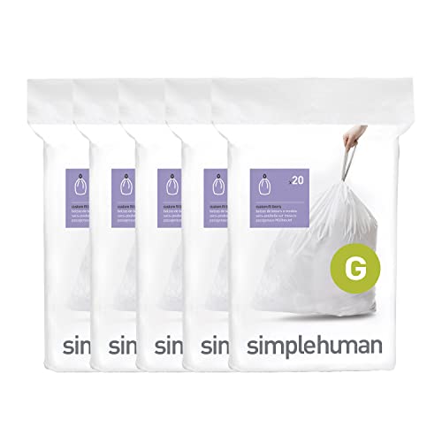simplehuman Code G 100 Count, Dispenser Pack Custom Fit Liners, Drawstring Trash Bags, 30 Liter / 8 Gallon, White