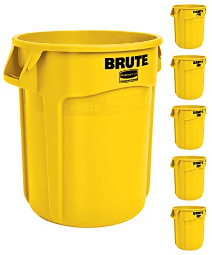 Rubbermaid Commercial Products Brute Heavy-Duty Round Trash/Garbage Can, 10-Gallon, gul, utomhusbehållare för landskapsare/konstruktion/restauranger/baksida av hus/kontor/bygghus, 6-pack