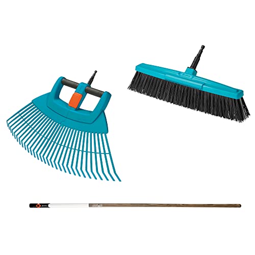Gardena combisystem gräsmatta och rengöringsset: set bestående av XXL fläktkvast, gatukvast och träskaft, för att sopa upp löv och trädgårdsavfall och för rengöring av stigar (17356-60)