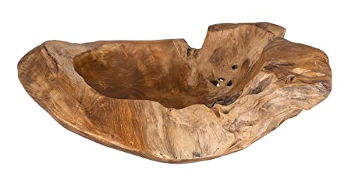 Ambientehome Teak adventskrans, rotskål, träskål, fruktskål, massiv ca 20–25 cm, dekorativ skål, ljusplockar med upphöjd kant