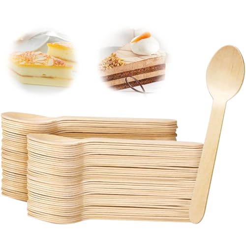 100 engångs träskedar – trätesked (11 cm) biologiskt nedbrytbara engångsbestick, träsked för fester och evenemang, camping