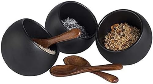 Saltlåda, behållare med vridbart lock med magnetiskt vridbart lock och 3 små träskedar, förvaringslåda för saltkryddor för kökskryddor, kryddor, örter, peppar eller småsaker