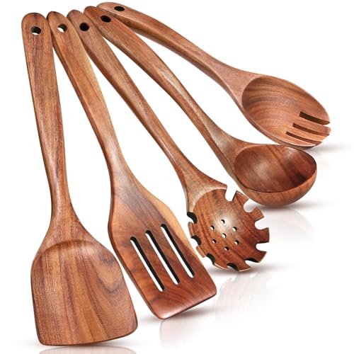 AIUHI Träskedar för matlagning, nonstick köksredskapsset, träskedar matlagningsredskap set repfria naturliga teak träredskap för matlagning (teak 8-pack)