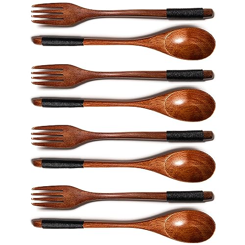 8 stycken träköksredskap, träbestick, trägaffel, träspoon, träsked, salladsbestick trä, återanvändbara träskedar gaffelset, för fest, bankett, buffé, catering, vardag, brun
