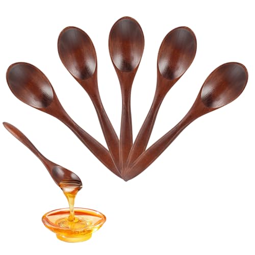 5 stycken träskedar små – honungsskedar trä – teskedar, 14,5 cm, handgjorda, miniträskedar för te, kaffe, sylt, honung, kökstillbehör, brun