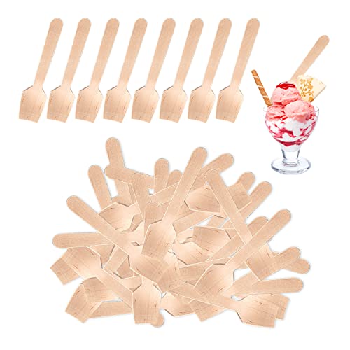 LSYYSL Miniskedar, efterrättsskedar i trä, glasskopor, biologiskt nedbrytbara träskedar, miljövänliga träskedar för glass, tårta, gelé, yoghurt