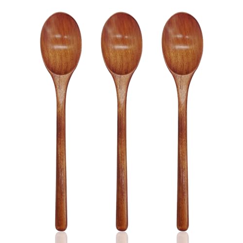 Träskedar med långt handtag, 25 cm blandningsskedar i trä, soppsked, träskedar, små matlagningsskedar i trä för bakning, omrörning (3 st)