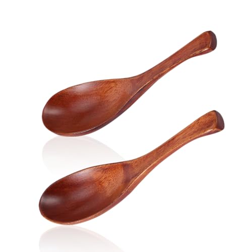 2 st träskedar, 15,5 cm japansk stil rund handgjord ris efterrätt matlagningssked, kinesisk stil handgjord trä soppsked för kök restaurang