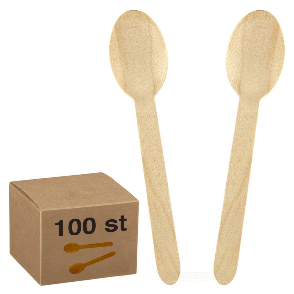Träskedar, engångsbestick, miljövänliga, 16 cm - 100 st