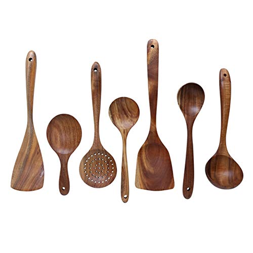 Träskedar för Kök, 7 St Träredskap Teak Trä Köksredskap Set