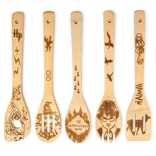 DaceStar Graverade träskedar set med 5 - rolig magisk bambusked kökstillbehör för matlagning - träspatel av högsta kvalitet - inflyttningspresent bröllopsgåvor för kvinnor eller män (kök/husdekor)