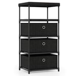 3-lådors tygbyrå med träskiva – Svart, 40x30x81 cm