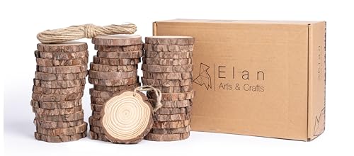 50 st naturliga träskivor 6-7 cm oavslutade förborrade träskivor träcirklar med naturligt jutesnöre för gör-det-själv-hantverk juldekorationer prydnader