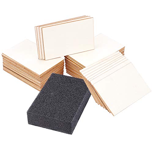 NBEADS 50 st rektangulära oavslutade träskivor, tomma trädelar med svamp skurkuddar för gör-det-själv-målning prydnad jul heminredning, 7,6 x 5 cm