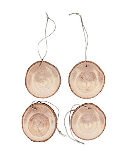 Rayher 65243505 träskivor för upphängning, påse 4 st., 6,5–7,5 cm ø, med jutehängare, träskrivning rund