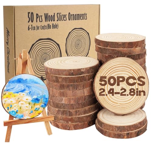 ilauke 50 stycken träloggskivor, 6–7 cm obehandlad rund naturträ träskivor utan hål Ca 8 mm tjocklek för gör-det-själv hantverk träskivor bröllop mittstycken jul dekoration trädskiva