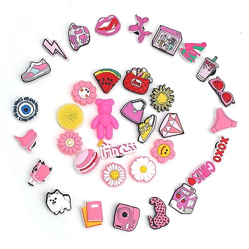FINEASY 35 stycken rosa skohänge, tecknad PVC skotillbehör, skohänge för träskor, barn, pojkar, flickor