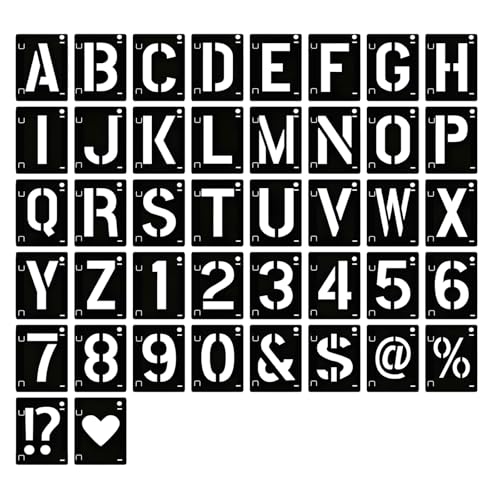 Okaywork 42 bokstäver stencil uppsättning, 10 cm återanvändbara mallar siffror tecken stenciler textildesign alfabetsmall träskyltar målning gör-det-själv hantverk