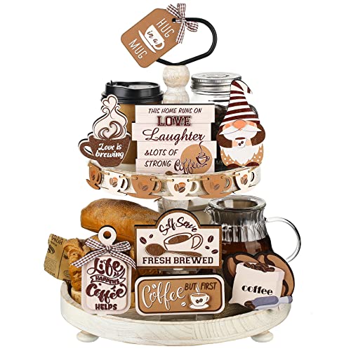 14 delar kaffetagrad bricka dekorset kaffe tema nivårad bricka dekor kaffe träskyltar kaffe skylt rustik bricka dekor för sommar hem kök bordsdekor