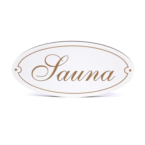 Dekolando Dekorativ dörrskylt oval – bastu – skylt 15 x 7 cm – skylt dörrskyltar namnskyltar lägenhet självhäftande träskylt dörr träskyltar