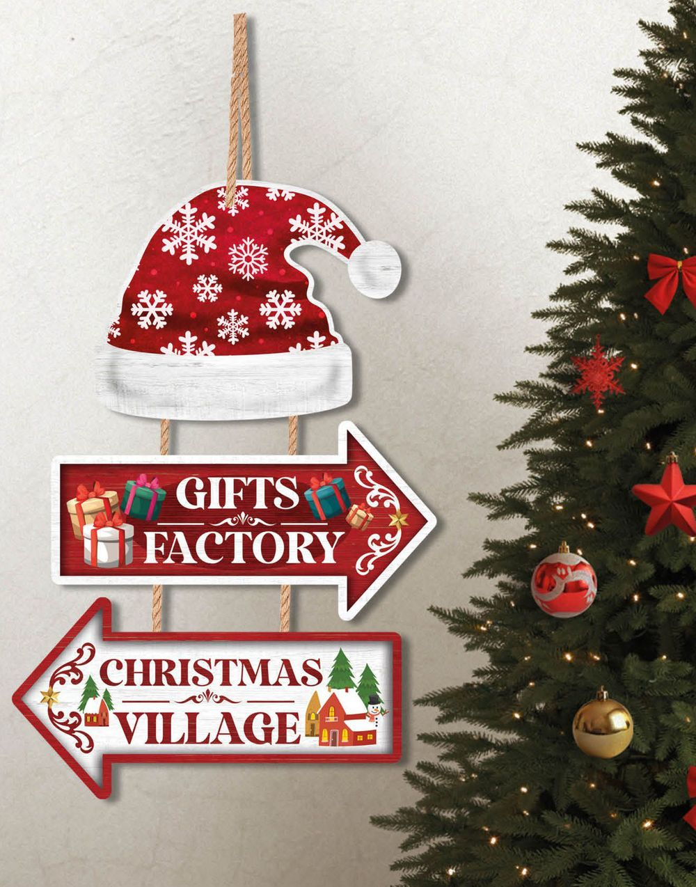 3 St Sammanhängande Träskyltar med Julmotiv och Text