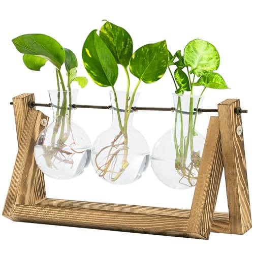 Bamworld Hydropodling Växtförökning Station med Träställ - 3 Glasvaser för Vattenväxter Heminredning