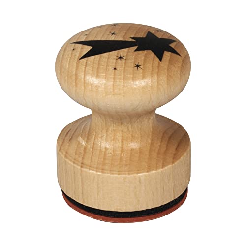 Rayher Stämpel trä "stjärnfall", rund, 3 cm ø, motivstämpel trä, trästämplar, julstämpel, smörstämpel, rund stämpel, 29231000