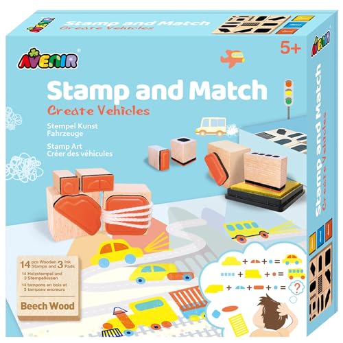 Avenir Stamp and Match - Skapa fordon | Hantverk fantasifulla fordon med 15 trästämplar, gnistfantasi och kognitiv utveckling | Spännande hantverkskit för barn 3+