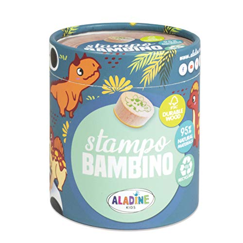 Aladine 3003133 stämpelset för barn, Stampo Bambino, dinosaurie, 8 trästämplar med stämpelkudde, trä, dinosaurie