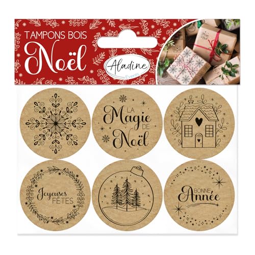 Aladine - 6 runda trästämplar "Christmas Magic" - kreativ fritid - gott nytt år, god jul - 01909