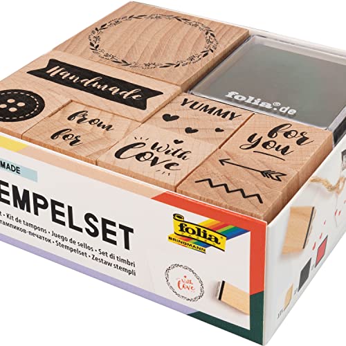 folia 31107 – Handgjort trästämpelset, inklusive 11 trästämplar och 2 stämpelkuddar – perfekt för att dekorera kort, vänskapsböcker, för bokstäver och scrapbooking
