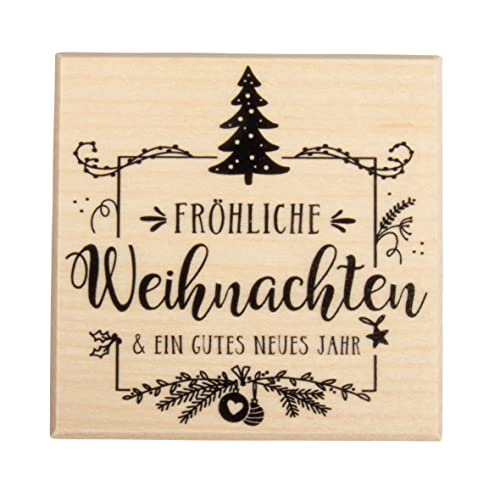 Rayher Stämpel trä "God jul", 7 x 7 cm, textstämpel trä, trästämplar, julstämplar, smörstämpel, 29242000