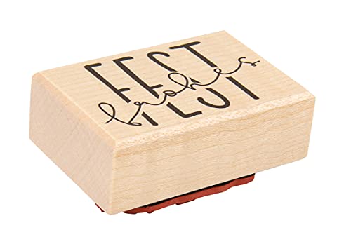 Rayher Stämpel trä "God fest", 4 x 6 cm, textstämpel trä, trästämplar, julstämplar, smörstämpel, 29227000