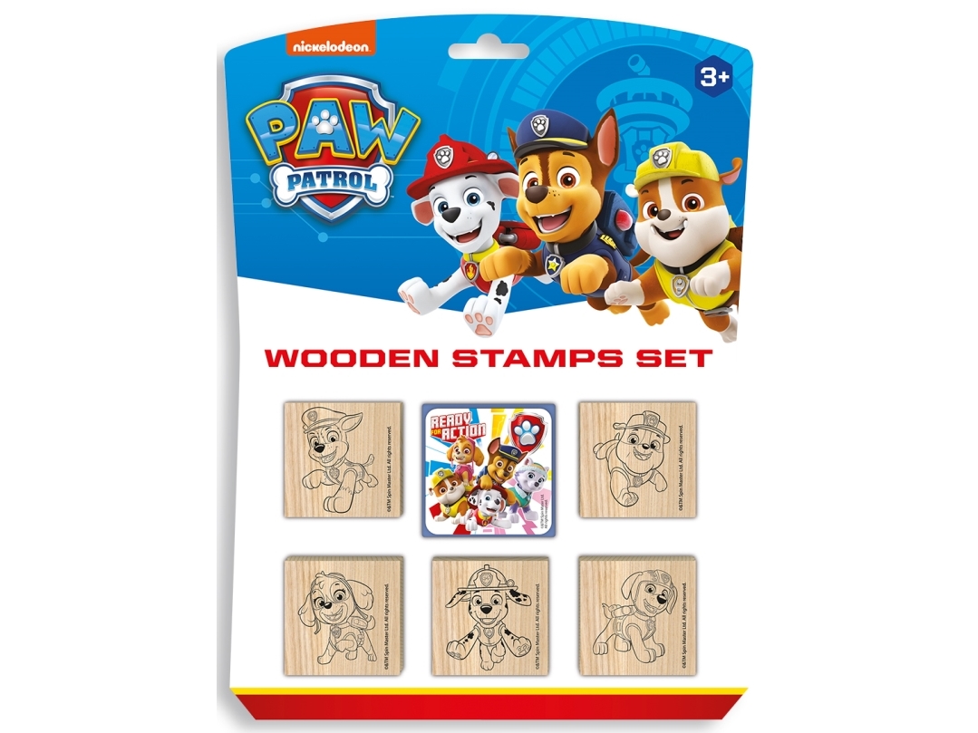 TRENDHAUS 955715 stämpelset engelska, 6 lärarstämplar med färgglada stämpelkuddar, trästämplar för barn, för lärare, trä
